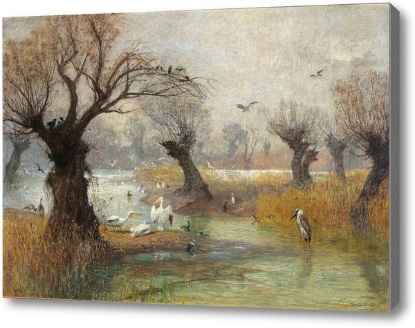 Репродукция картины "Пеликаны на берегу реки"
