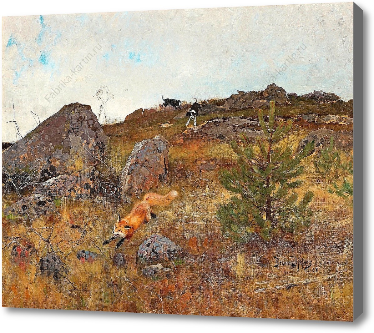 Репродукция картины "Лису преследуют гончие"