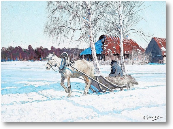 Репродукция картины "Лошадь с санями"