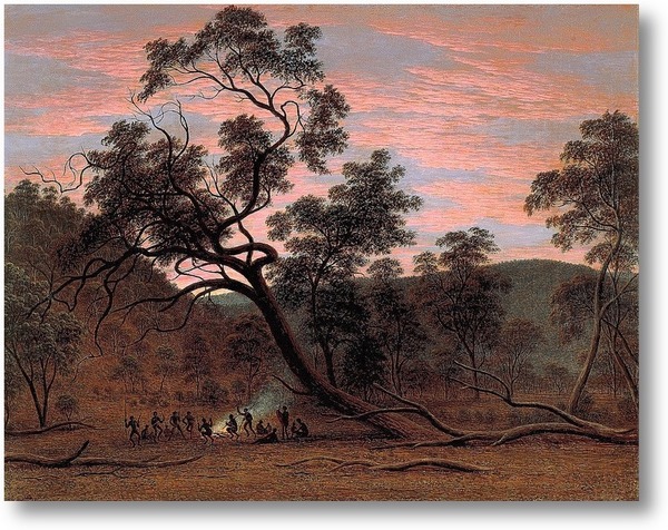 Репродукция картины "Корробори аборигенов в Миллс равнине"