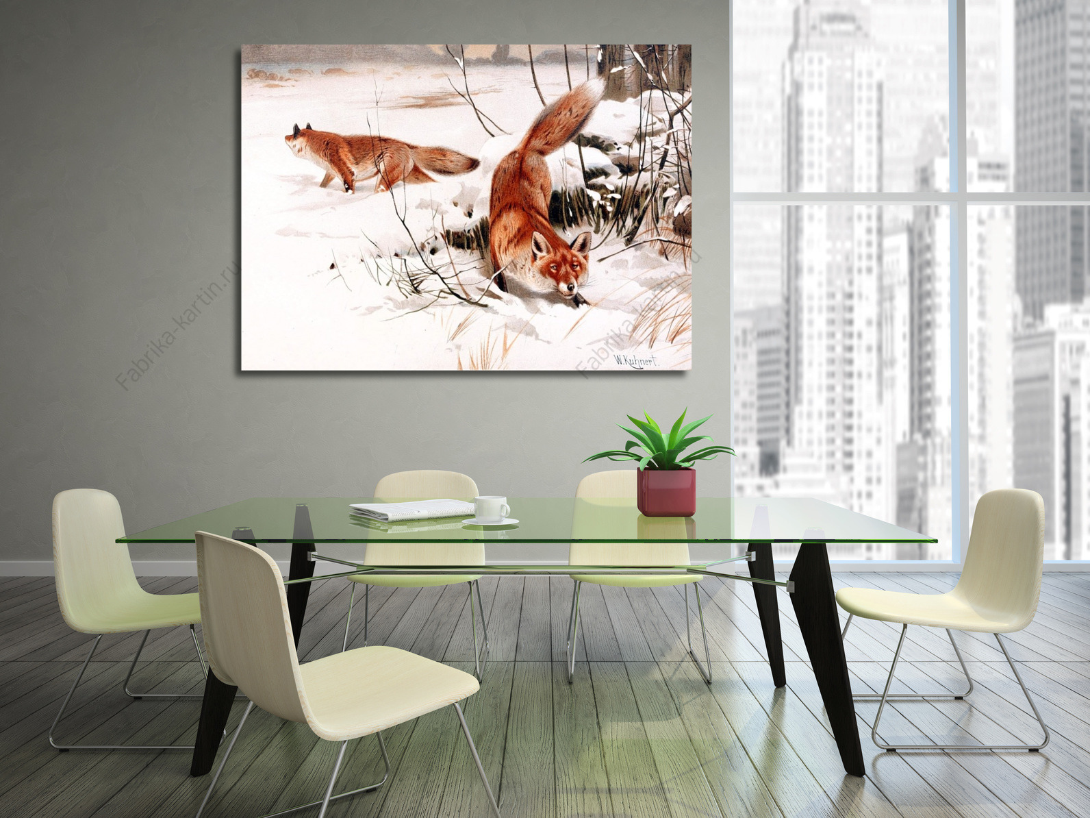 Репродукция картины "лисы в снегу"