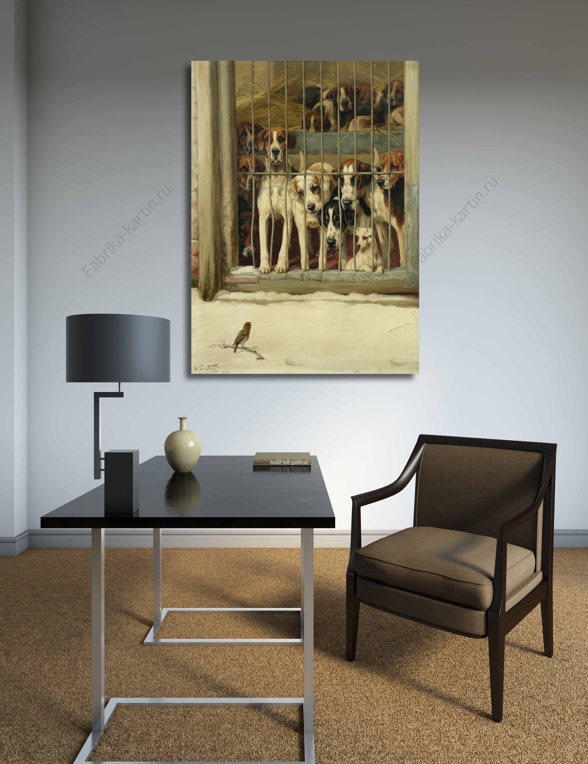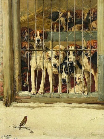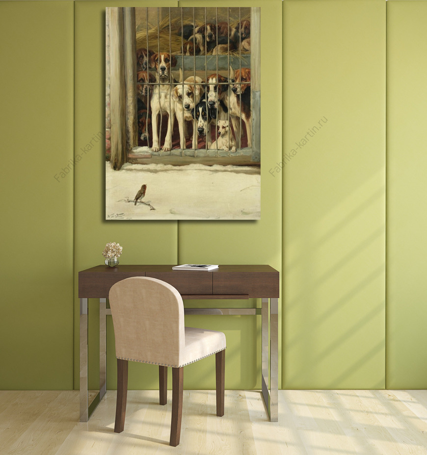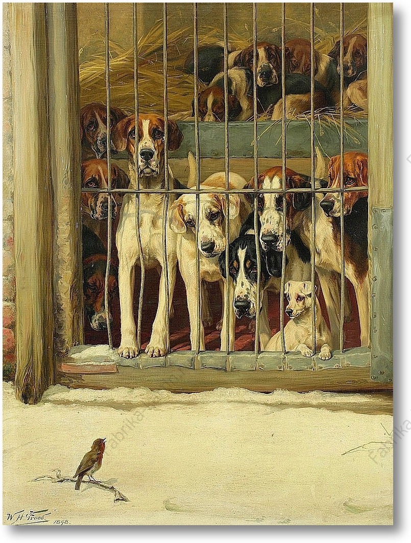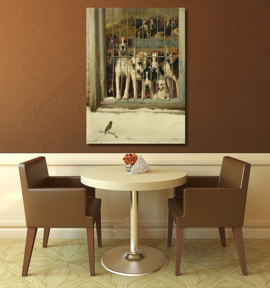 Репродукция картины "Собаки и птичка"