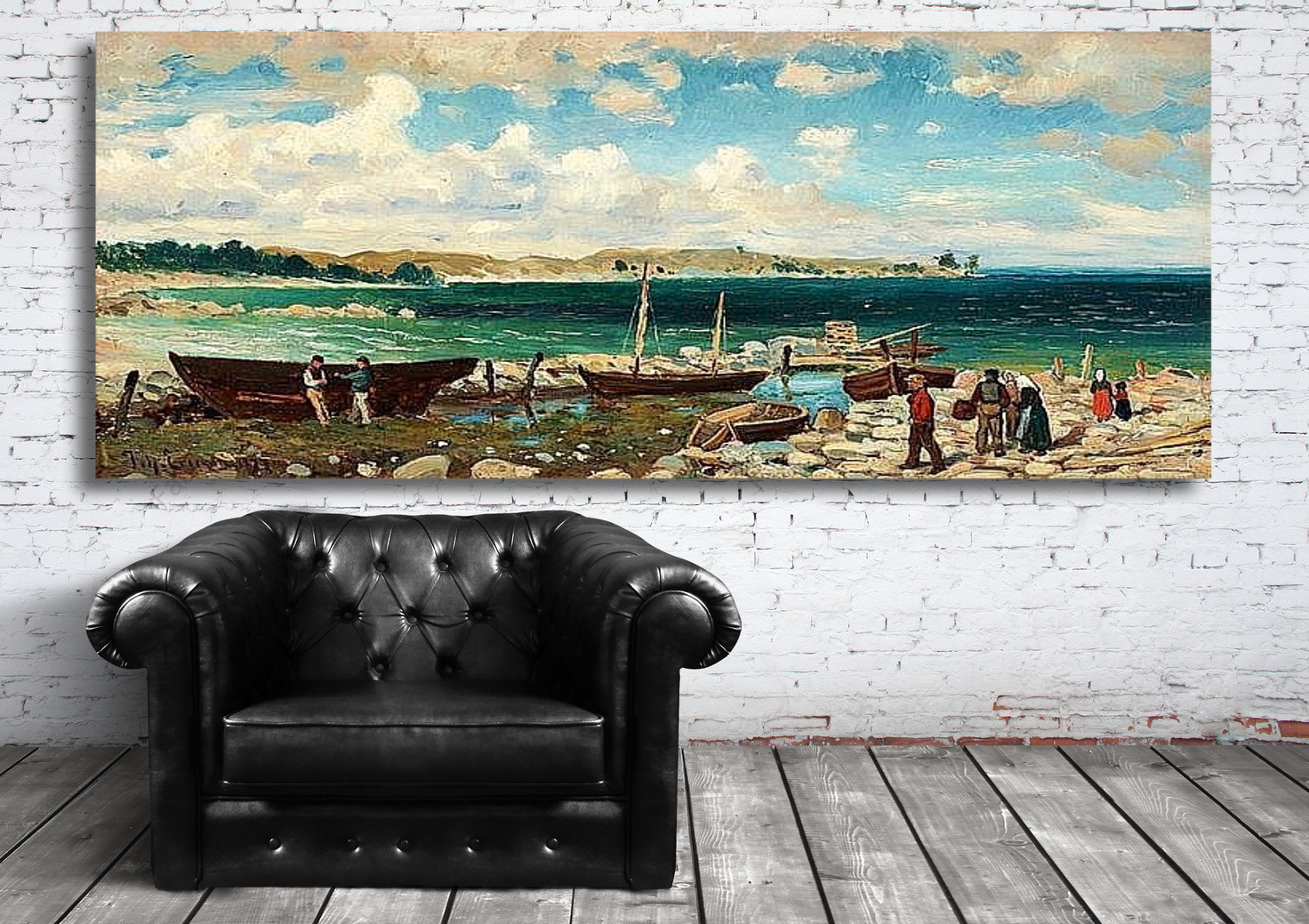 Репродукция картины "Прибрежный пейзаж с мариной"