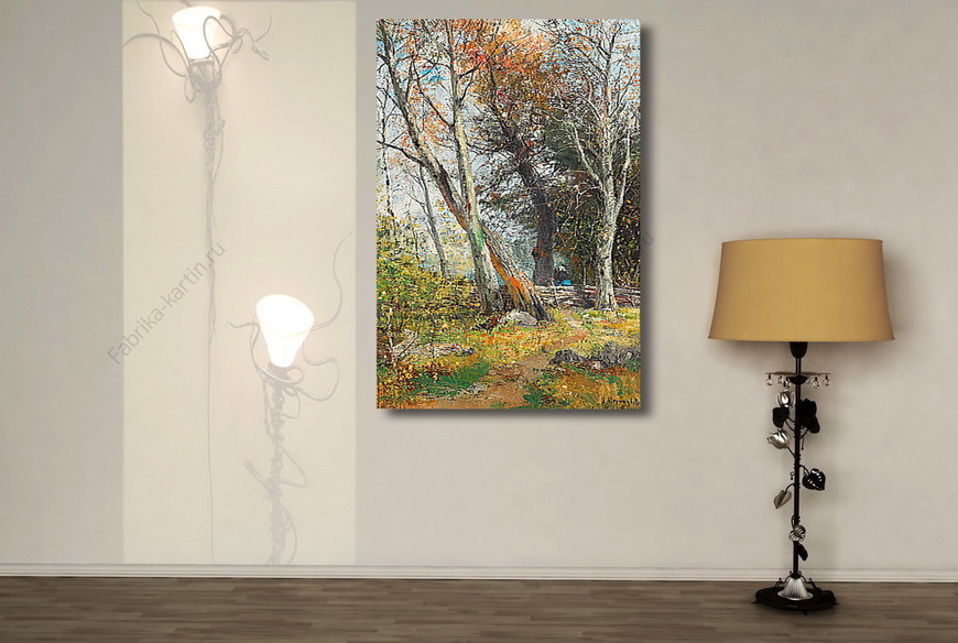 Репродукция картины "Березовая роща и женщина за забором"