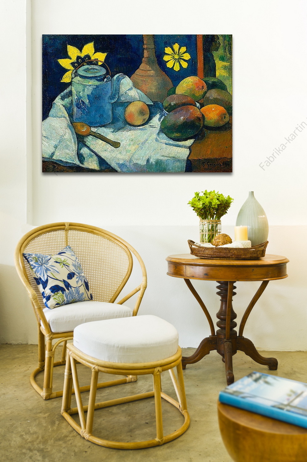 Репродукция картины "Натюрморт с чайником и фруктами"