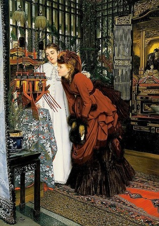 Репродукция картины "Молодые девушки смотрят на японские книги"