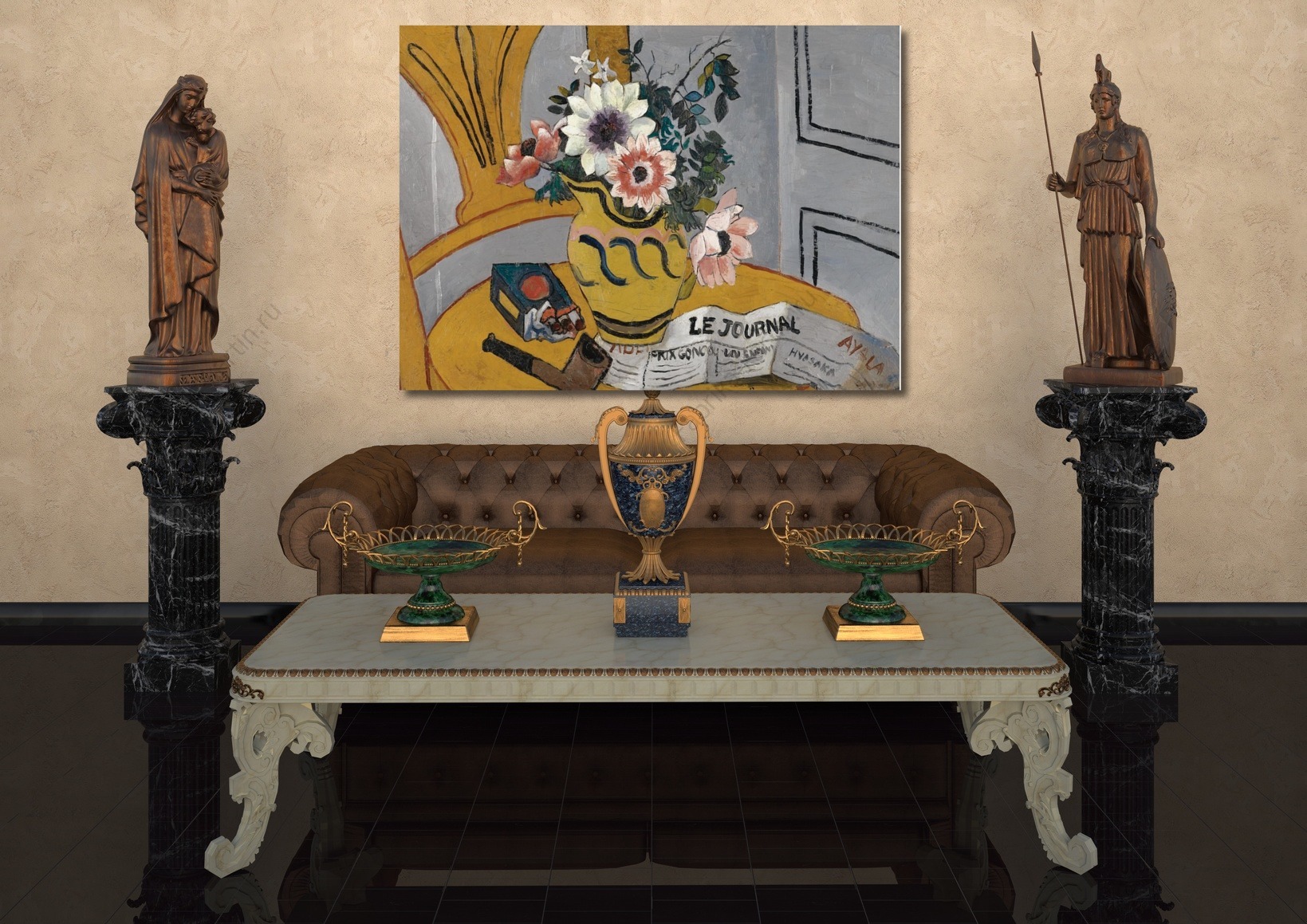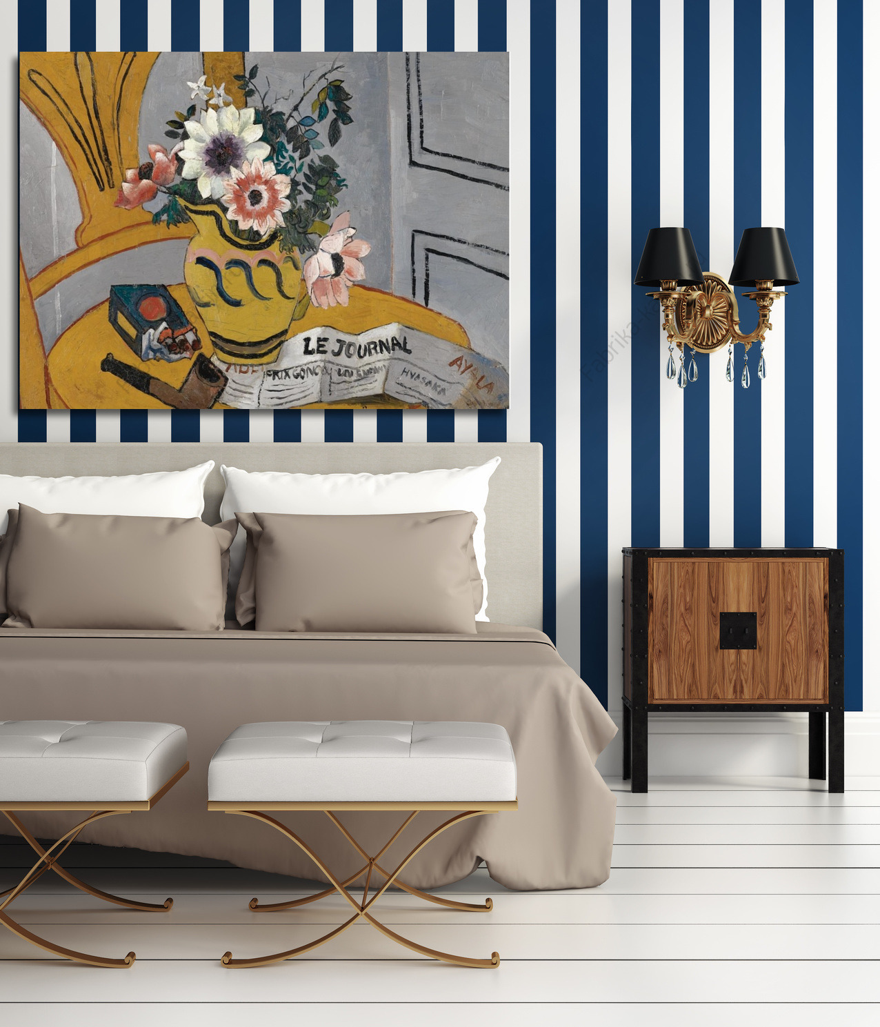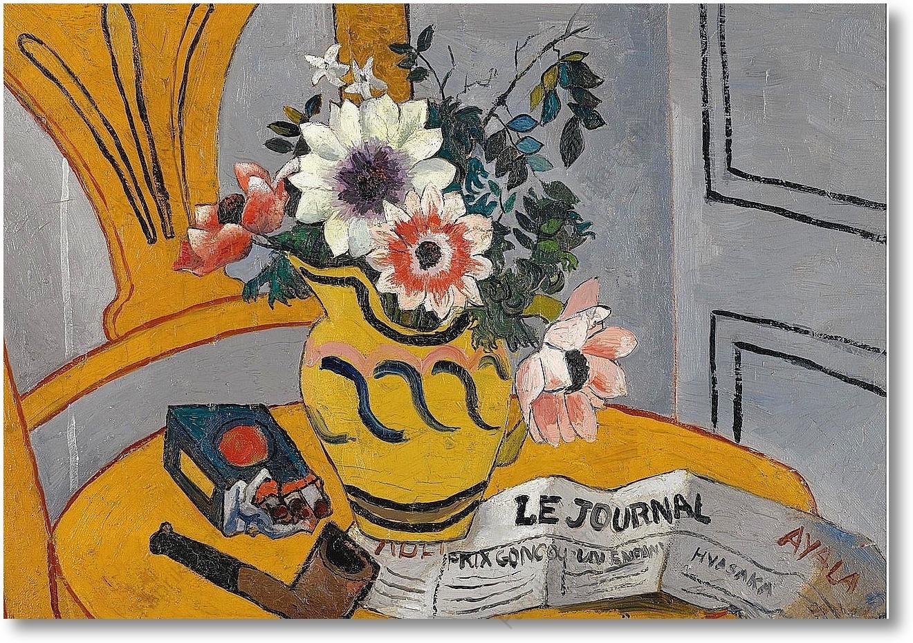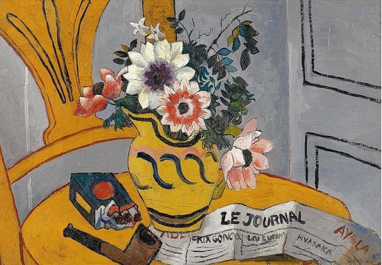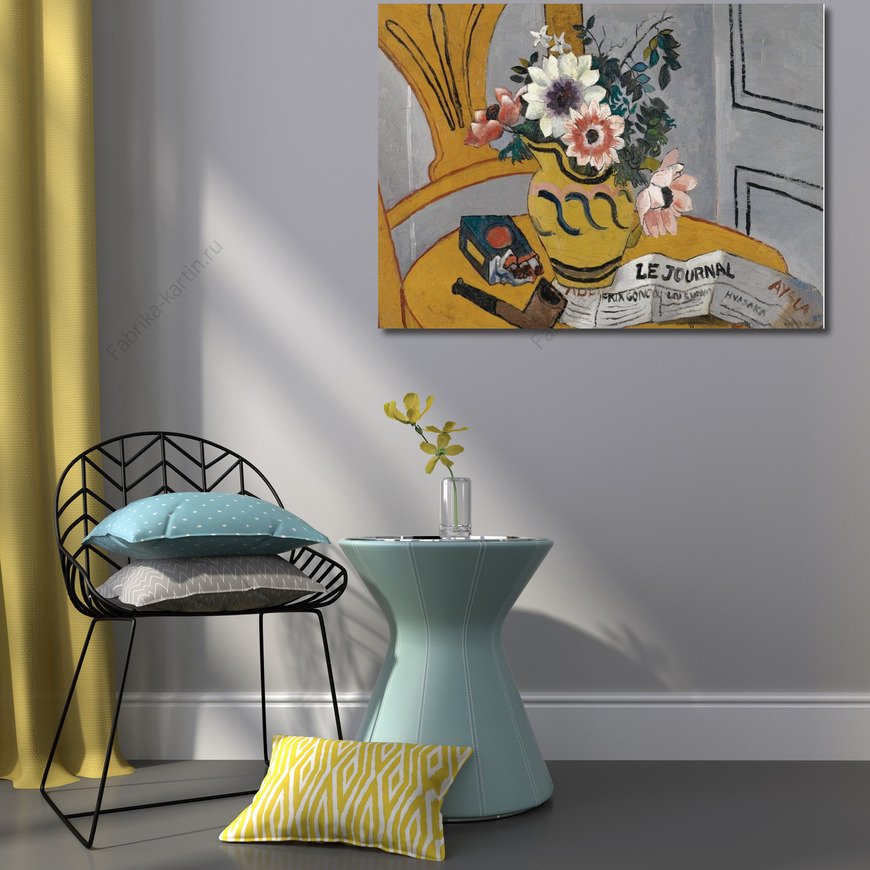 Репродукция картины "Цветы,трубка и газета"