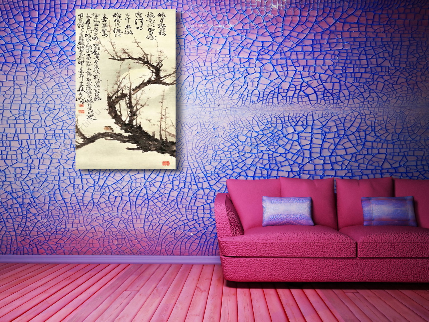 Репродукция картины "Цветки сливы под луной, Куифенг Гао"