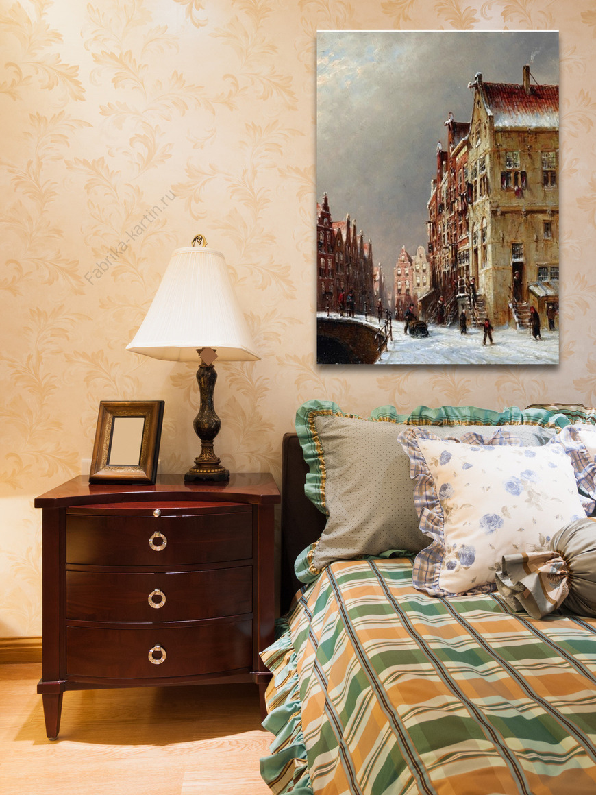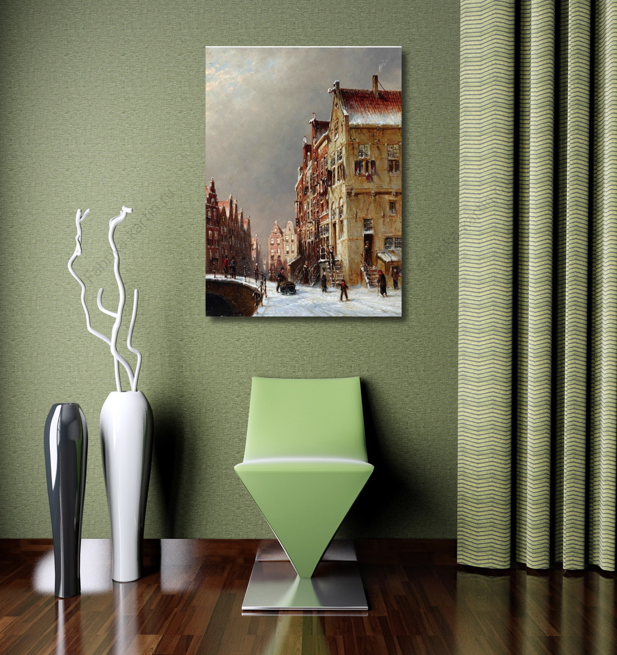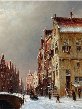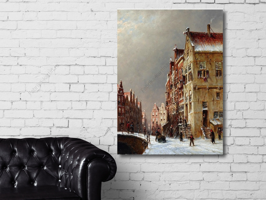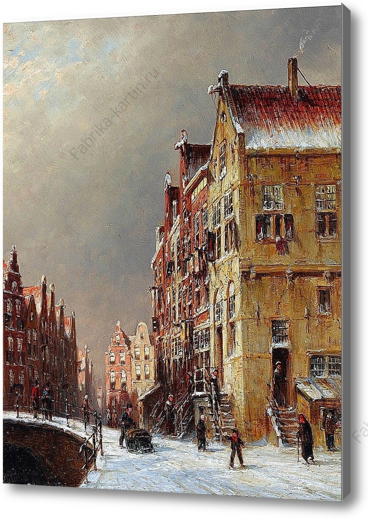 Репродукция картины "Фигуры в заснеженных улицах голландского города"