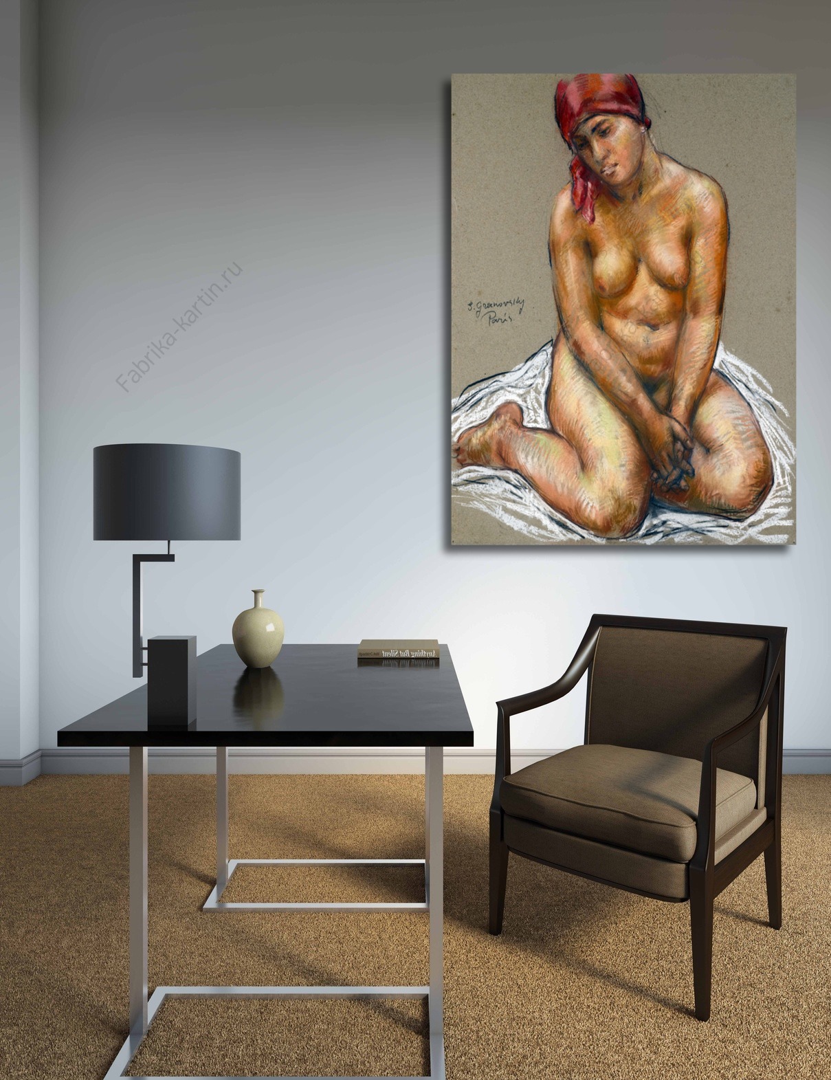 Репродукция картины "Обнаженная в красном платке"