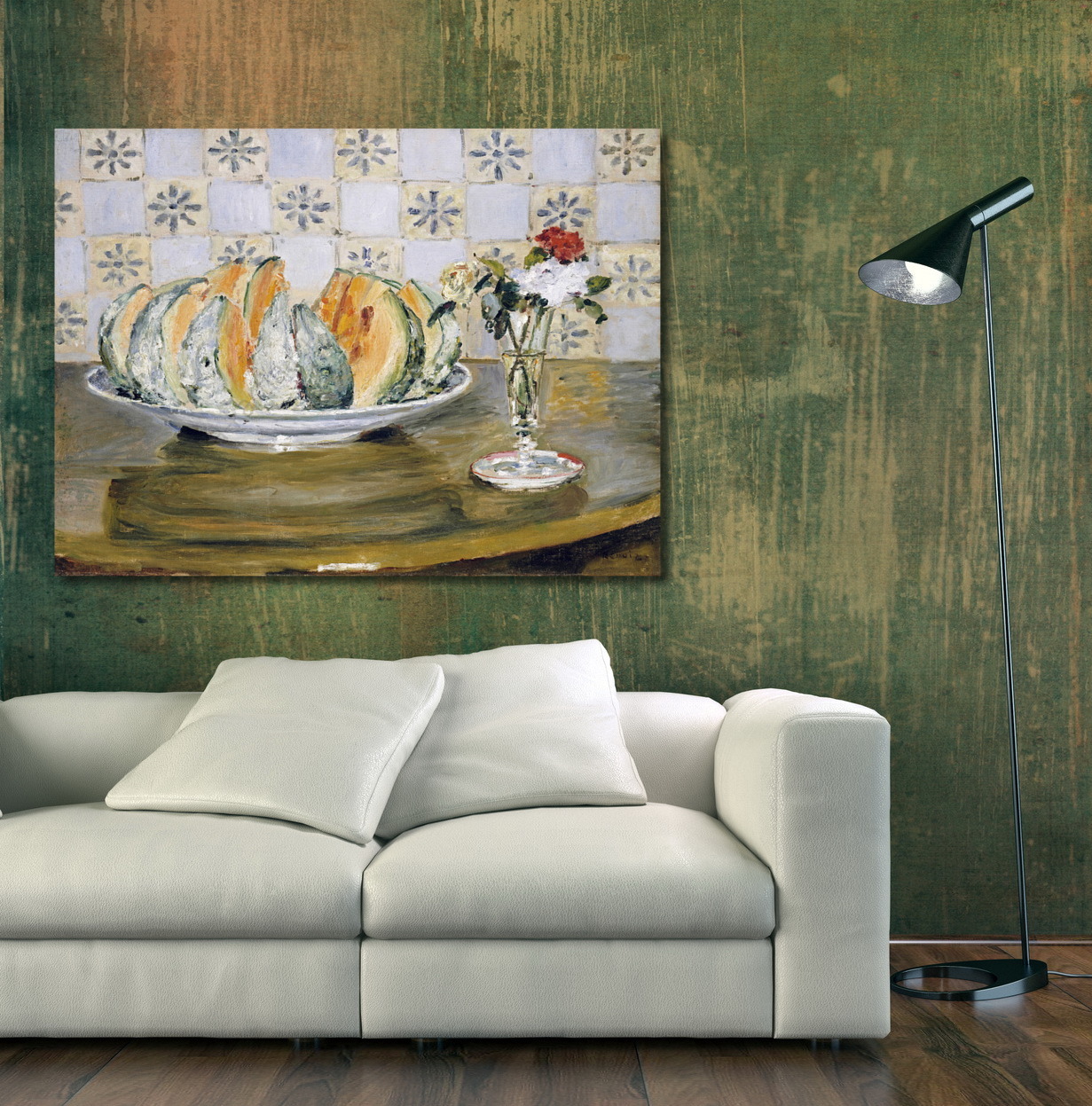 Репродукция картины "Натюрморт с дыней и вазой с цветами"